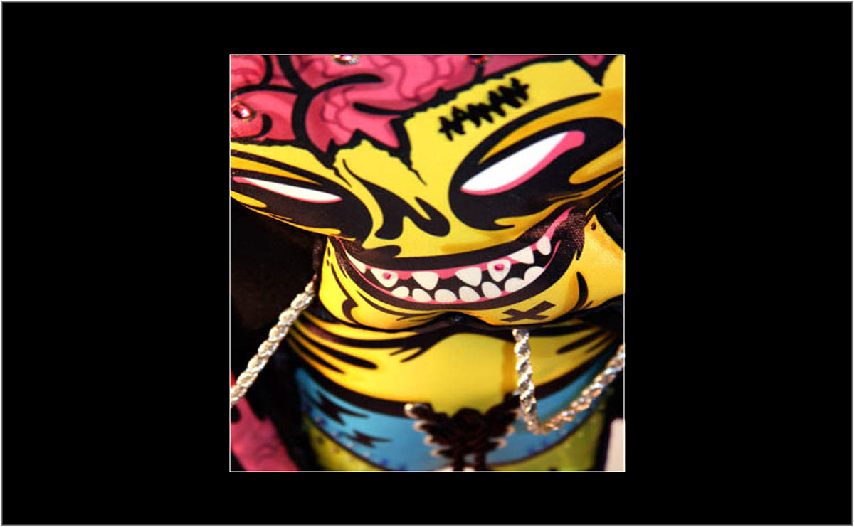 Mighty Glowbone - “The Rainbow Smasher” plush doll is part of my “Avatars of Mayhem” series created for the United Nations of Cupco show. The group show was organized by Cupco.net, who invited 100 international artists to participate in building felt characters from an existing template. The United Nations of Cupco exhibit was launched at the Damien Minton Gallery in Sydney Australia. Details about the exhibit can be seen at: cupco.net/cupcounitednations.html |