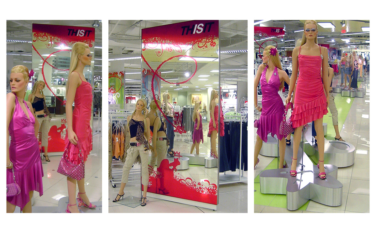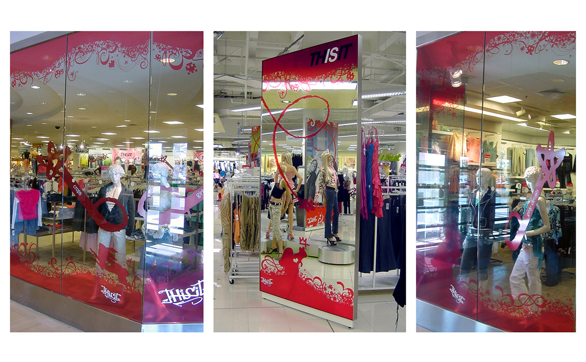 The re-branding of the Macy’s Junior Women Department took place during the merger of Federated Department Stores/Burdines to Macy’s Incorporated. During this time the Junior Department was re-branded to incorporate the colors and icons of the Macy’s brand while using some elements from the company’s junior website to add playful movement to the store.